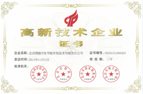 當(dāng)前位置: 國能中電公司動態(tài)> 熱烈祝賀我公司榮獲“國家高新技術(shù)企業(yè)證書”