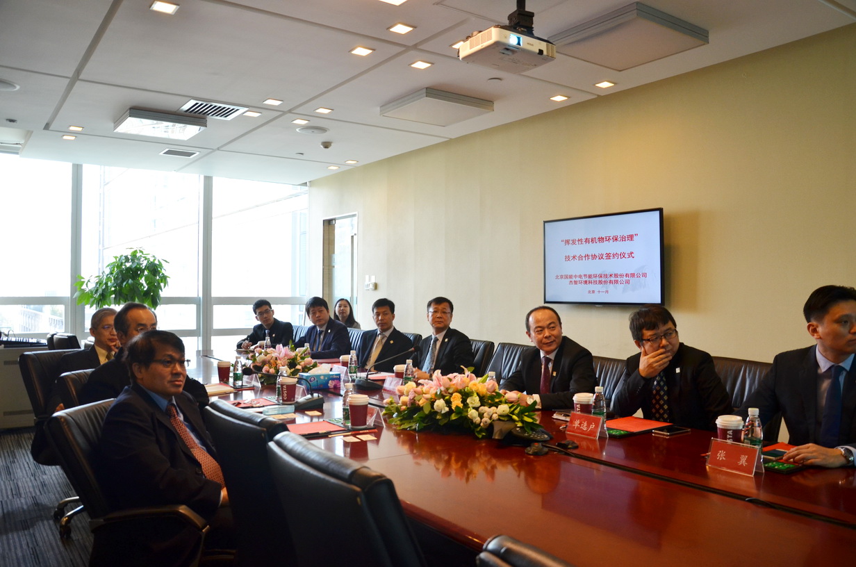 2017年11月7日上午,北京國能中電節能環保技術股份有限公司與杰智環境科技股份有限公司就“揮發性有機物環保治理”項目合作達成協議,并在國能中電公司舉行了隆重而熱烈的簽約儀式。