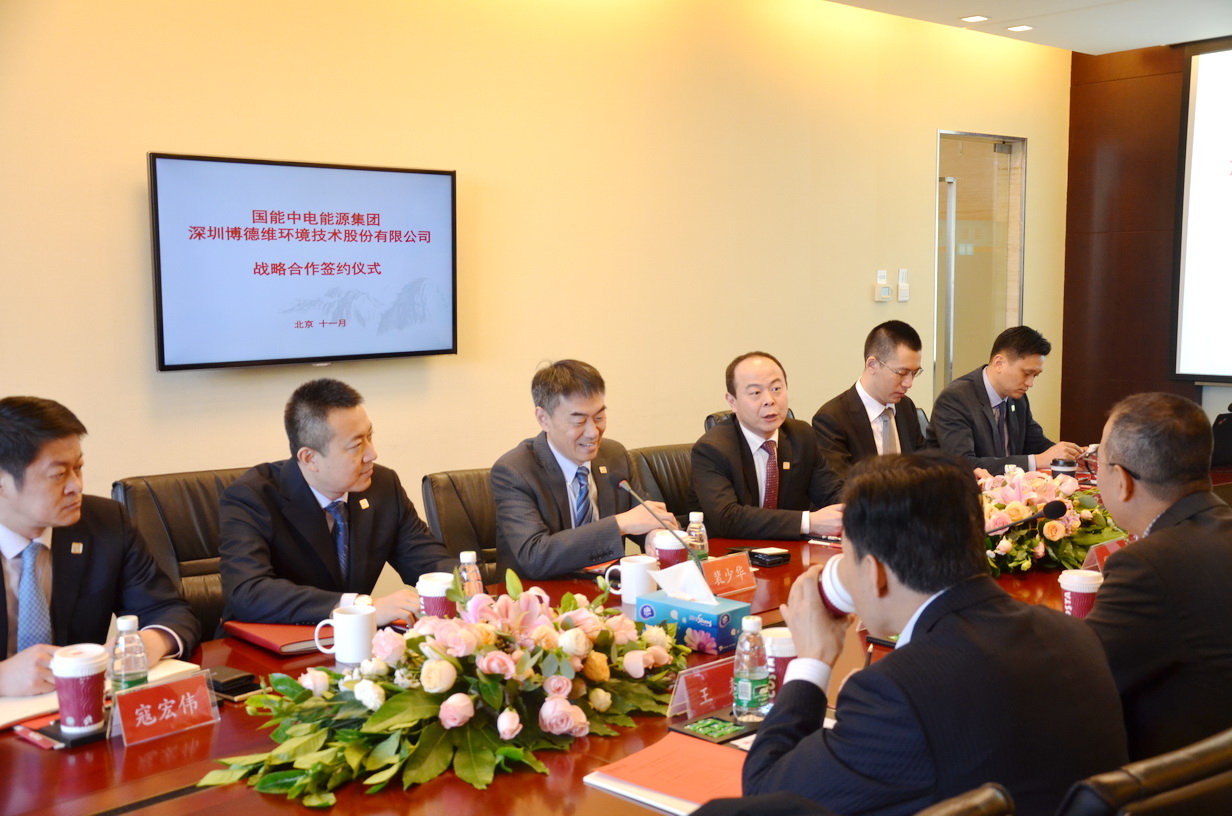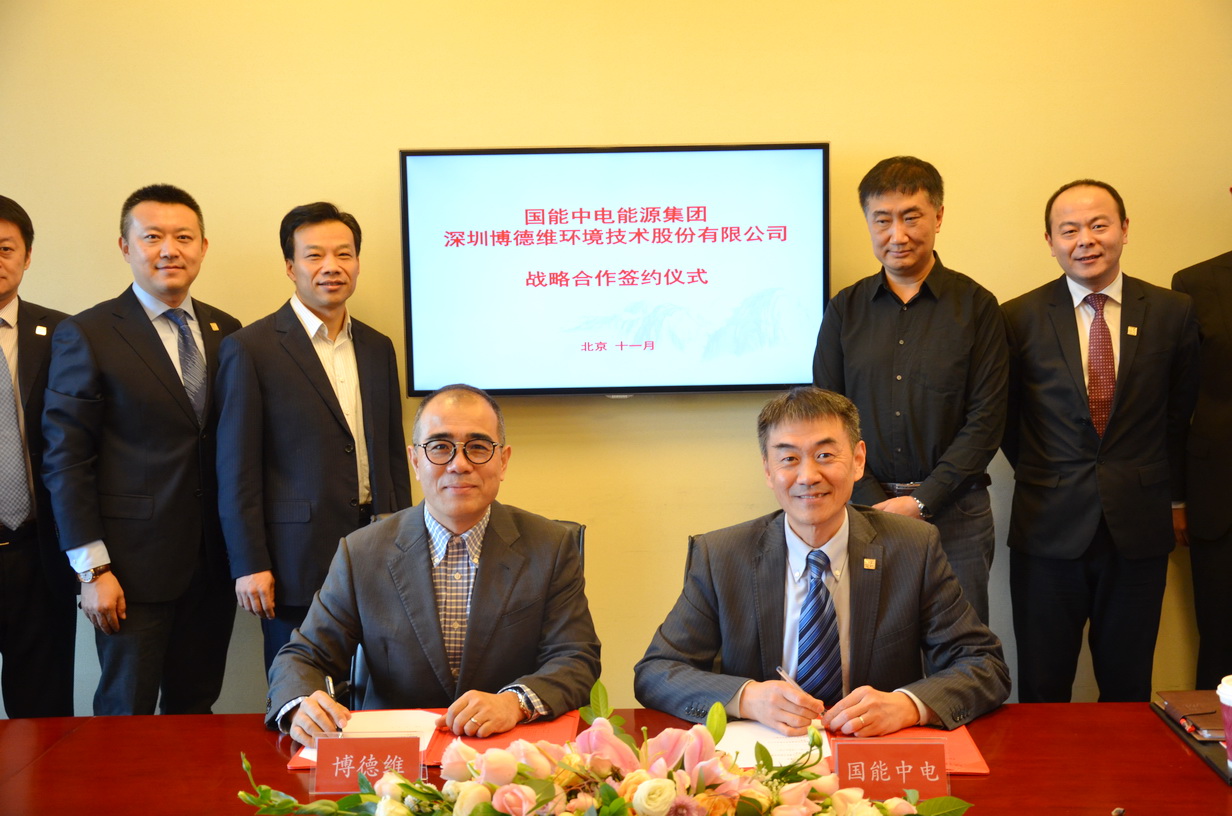 2017年11月8日上午,國能中電能源集團有限責任公司與深圳博德維環(huán)境技術股份有限公司達成戰(zhàn)略合作協(xié)議,并在國能中電集團總部舉行了簽約儀式。博德維總裁蕭龍、技術副總裁王秦、北京公司總經(jīng)理崔艷軍,國能中電集團副董事長裴少華,國能中電集團董事、北京國能中電節(jié)能環(huán)保技術股份有限公司總裁初煒,國能中電集團副總裁、國峰清源生物能源有限責任公司總經(jīng)理楊靜、北京國能中電節(jié)能環(huán)保技術股份有限公司副總裁寇宏偉,國能中電(北京)投資有限責任公司總經(jīng)理王邁,國能中電能源集團廣東分公司常務副總經(jīng)理張翼,北京國能中電節(jié)能環(huán)保技術股份有限公司設計院副院長黃準等領導出席了簽約儀式。
