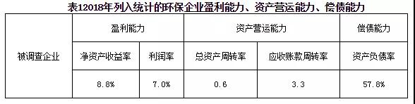 從資產營運能力看,被調查企業總資產周轉率平均值為0.6、應收賬款周轉率平均值為3.3,均較低,與2017年相比,2018年企業的總資產周轉率同比與2017年持平;應收賬款周轉率略有所下降。反映環保企業的資產營運能力基本保持穩定,回款問題仍較突出。